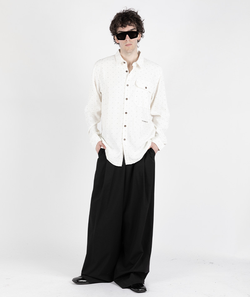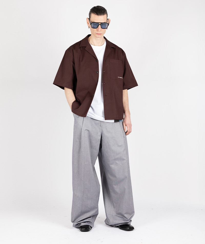Garments are developed through a research and selection of deadstock fabrics, reflecting the brand’s attentive and responsible approach to materials.