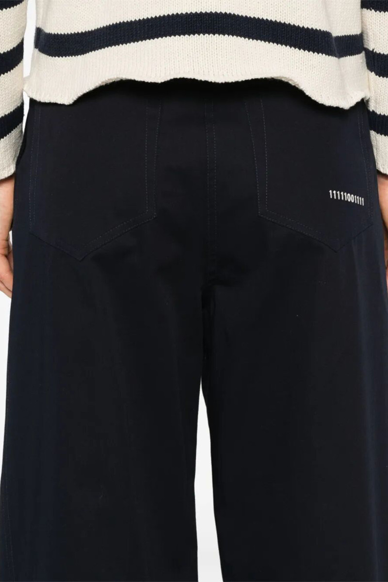 Realizzati in Italia, i pantaloni Charlotte in cotone di Société Anonyme Créations, in blue, combinano eleganza e struttura. Presentano una chiusura con zip nascosta e bottone, due tasche laterali a filetto, due tasche posteriori applicate e un raffinato dettaglio con pieghe a cannone, per un look essenziale e sofisticato.
