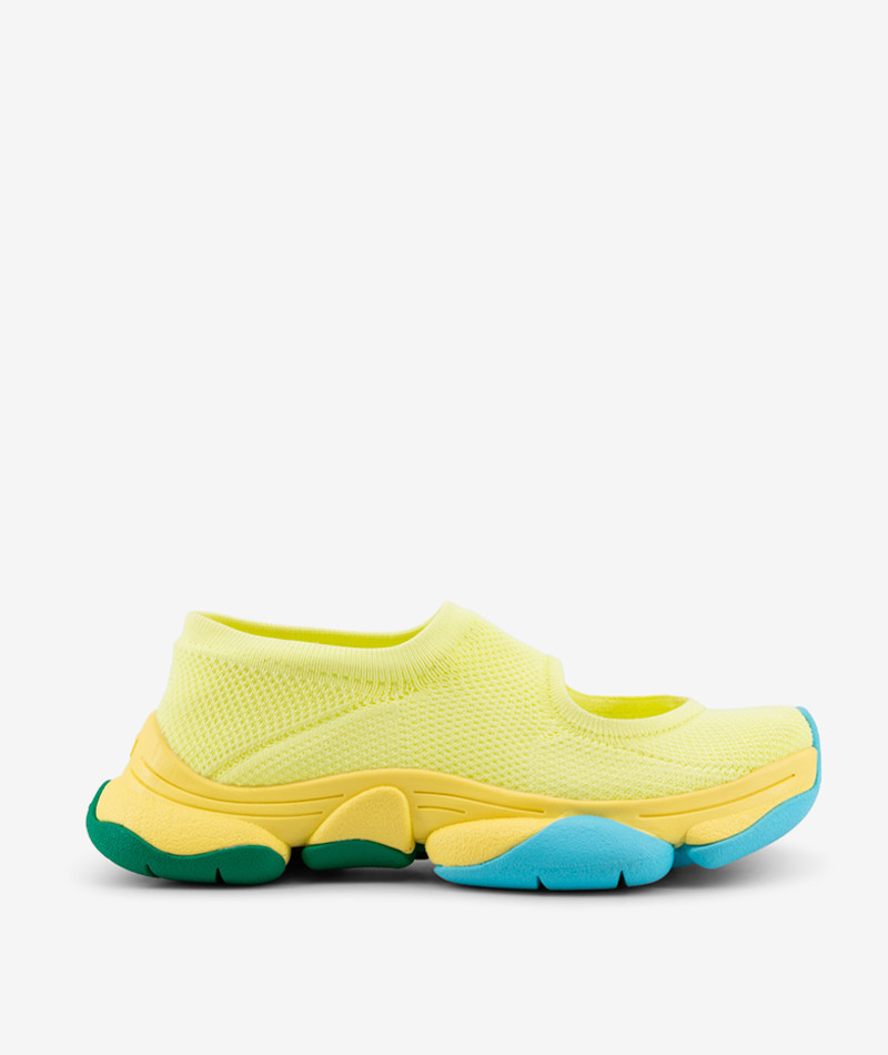 La collaborazione tra Camper e Issey Miyake entra nel suo secondo capitolo con Karst Finch, una sneaker da donna che sintetizza approccio tecnico e sensibilità progettuale. Disegnata da Satoshi Kondo insieme al team Camper, la silhouette prende forma a partire da un’immagine naturale: il piumaggio dei fringuelli, tradotto in una costruzione leggera, dinamica, quasi istintiva. La tomaia elastica aderisce al piede con continuità, mentre la suola Karst — già elemento distintivo del linguaggio Camper — introduce un segno organico, irregolare, che richiama le superfici rocciose da cui prende il nome. Il risultato è un oggetto che non forza la forma, ma la accompagna.